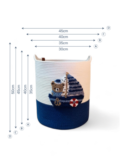 Bear on the Ship set of 3 or 5 pcs Nautical Nursery Storage & Décor Set – Handcrafted Woven Baskets with Sailboat & Bear Design – Optional Crochet Whale & Crab Plush Toys – Coastal Theme for Baby Room, Playroom, or Kids’ Storage