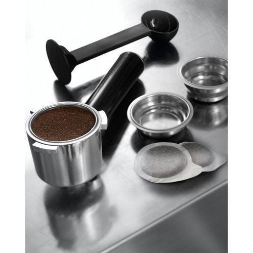 • Manual milk frother for creamy cappuccinos and lattes