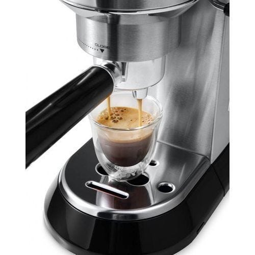 Experience the perfect espresso at home with the DeLonghi Dedica Style Espresso Coffee Maker. This sleek, silver machine delivers professional-quality coffee with its powerful 1300-watt thermoblock heating system, ensuring optimal temperature stability for rich, aromatic espresso.