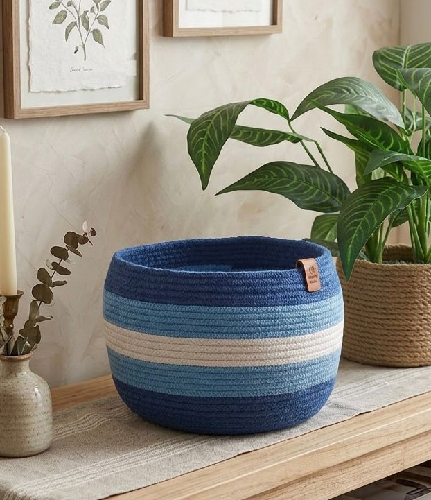 Description: Brighten up your space with these vibrant multicolor baskets suitable as organizer or plants pot, beautifully crafted in a mix of blue, off-white, orange, and yellow tones. Perfect as a stylish organizer for your home or office, it also doubles as a unique plant pot cover to add a splash of color to your indoor greenery. Durable, lightweight, and versatile, this basket blends function with decorative flair—ideal for storing small essentials, toys, or displaying your favorite plants with charm.