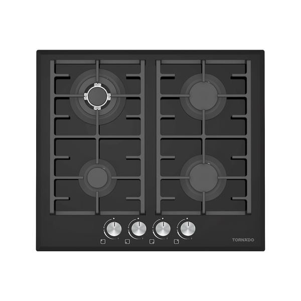 TORNADO Built-In Hob 60 x 60 – 4 Gas Burners Glass Black GHV-M60CCU-G
